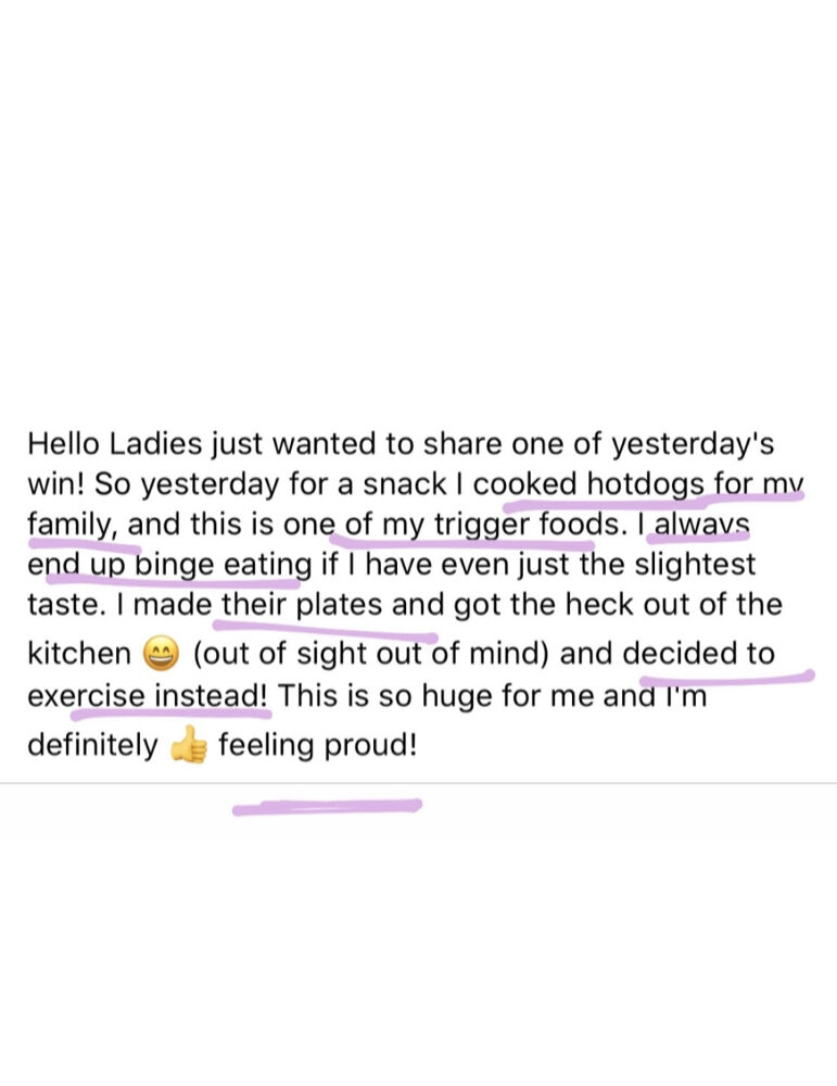 It wasn't until I started learning that through years of dieting & repeating certain behaviours, I have created specific neural pathways in my brain that made me feel crazy & out of control with food. As soon as I learned the tools to get to the ROOT of my issues & REWIRE my brain, I've been completely binge free and no longer feel the desire or the impulse to binge.